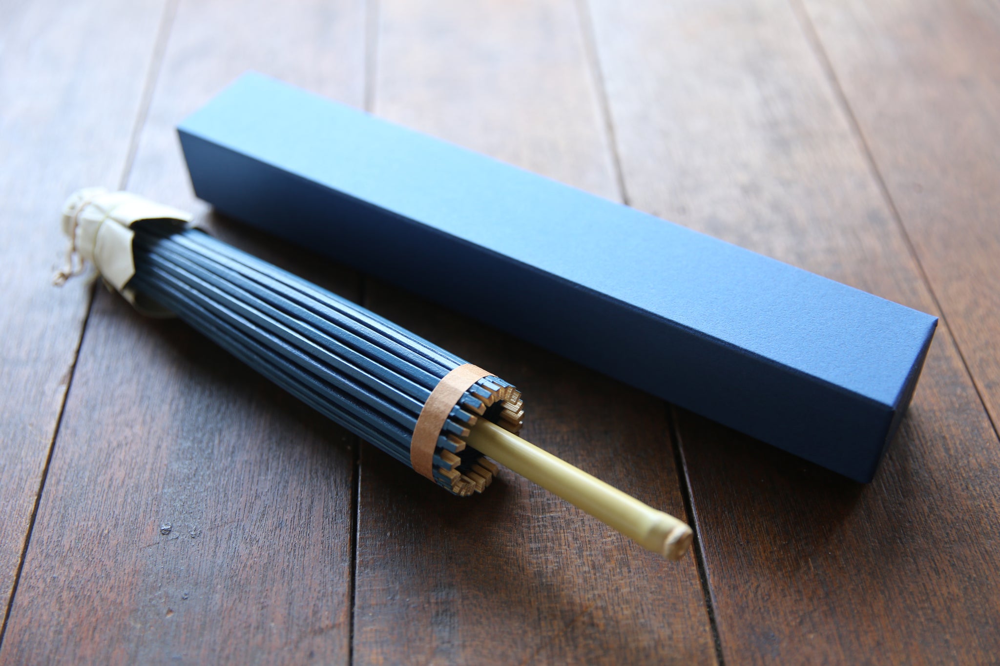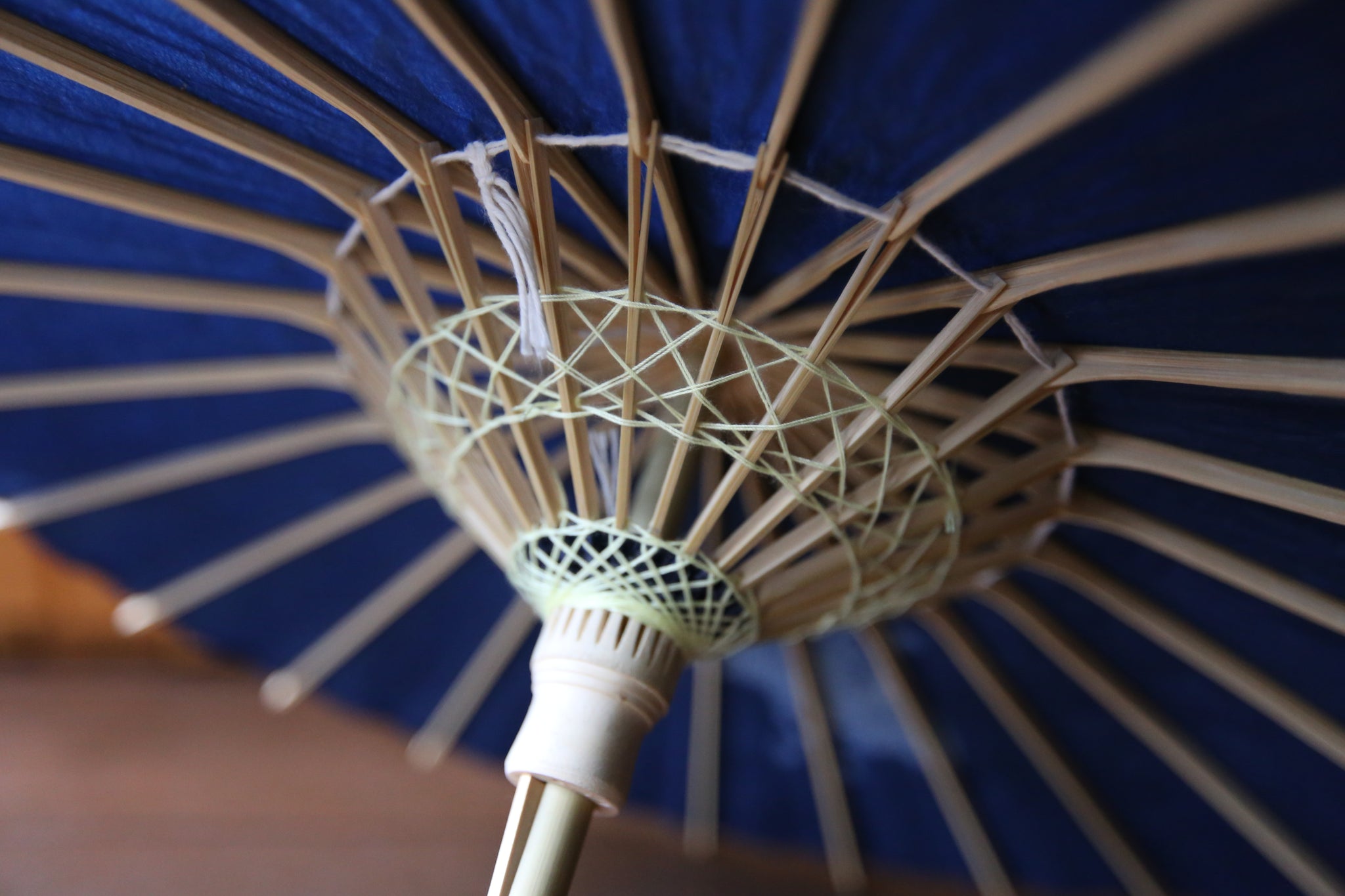 和傘の骨組みは、1本の竹を均等に割り、傘を畳んだ際に元の竹に戻るように組まれています。