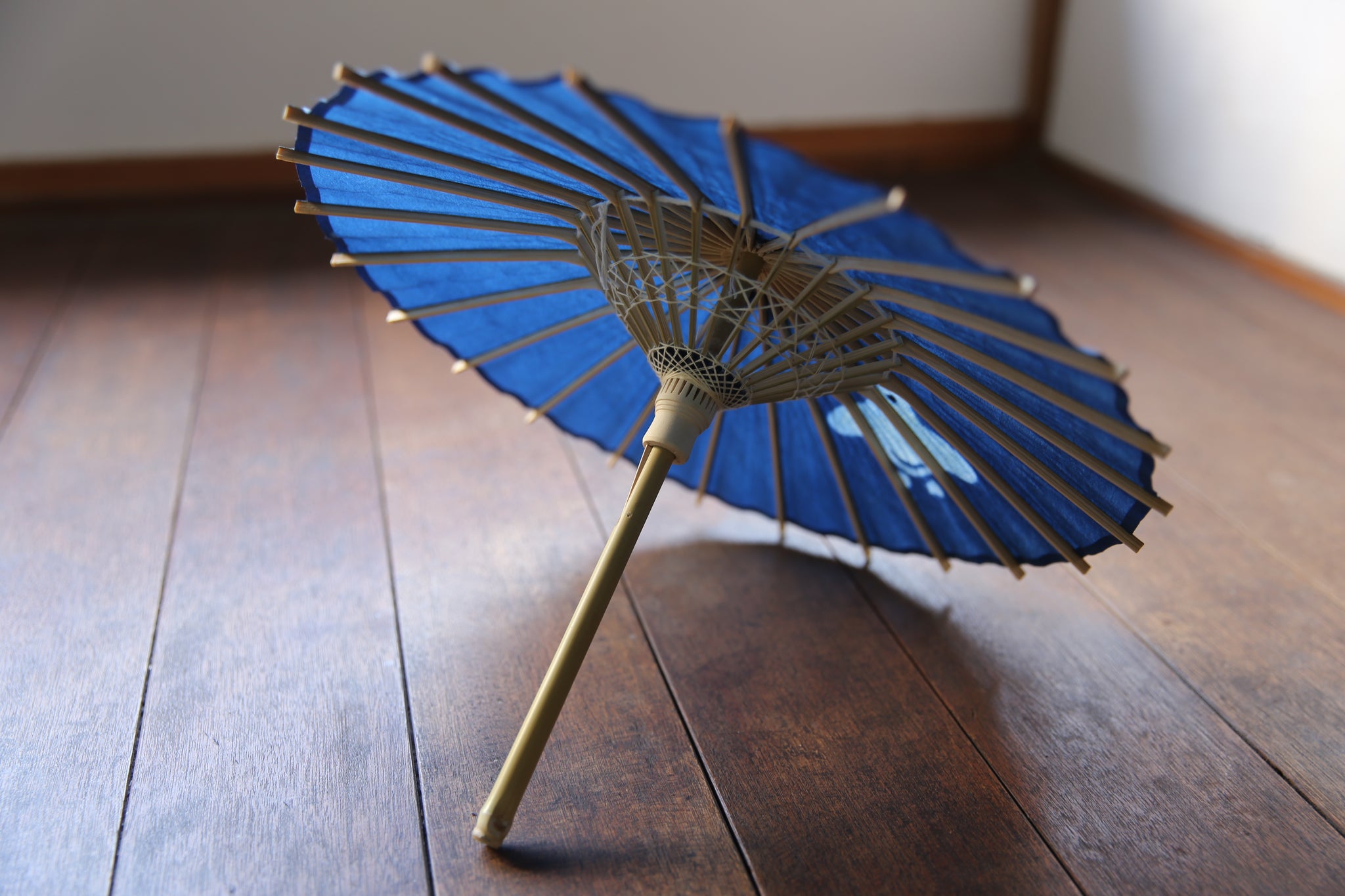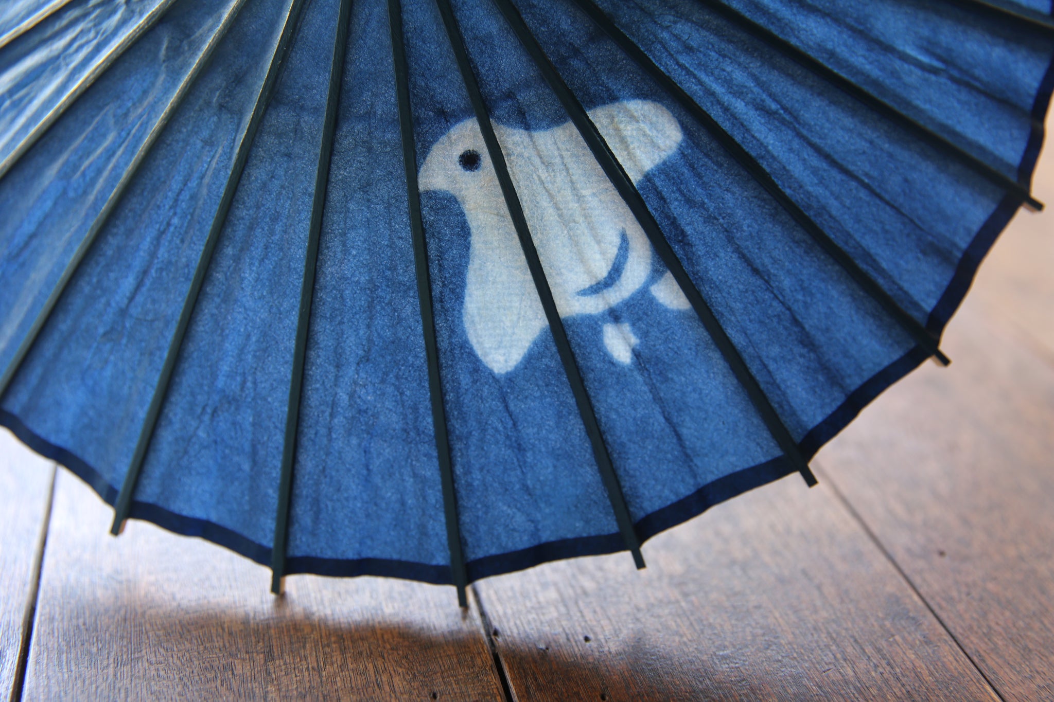 日傘と同じく油を引いていない和紙そのままですので、濡らさないようにお気を付け下さい。