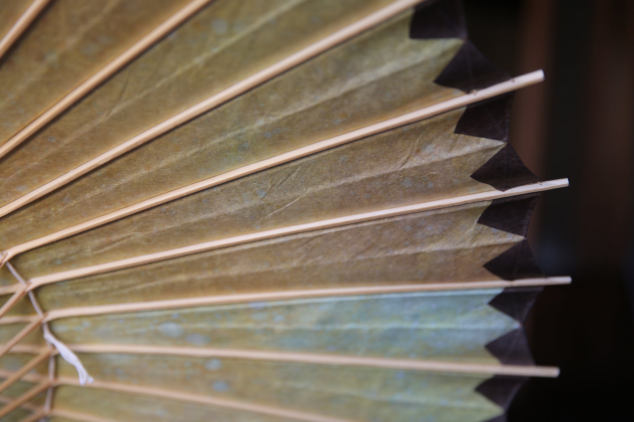 和傘の骨組みは、1本の竹を均等に割り、傘を畳んだ際に元の竹に戻るように組まれています。