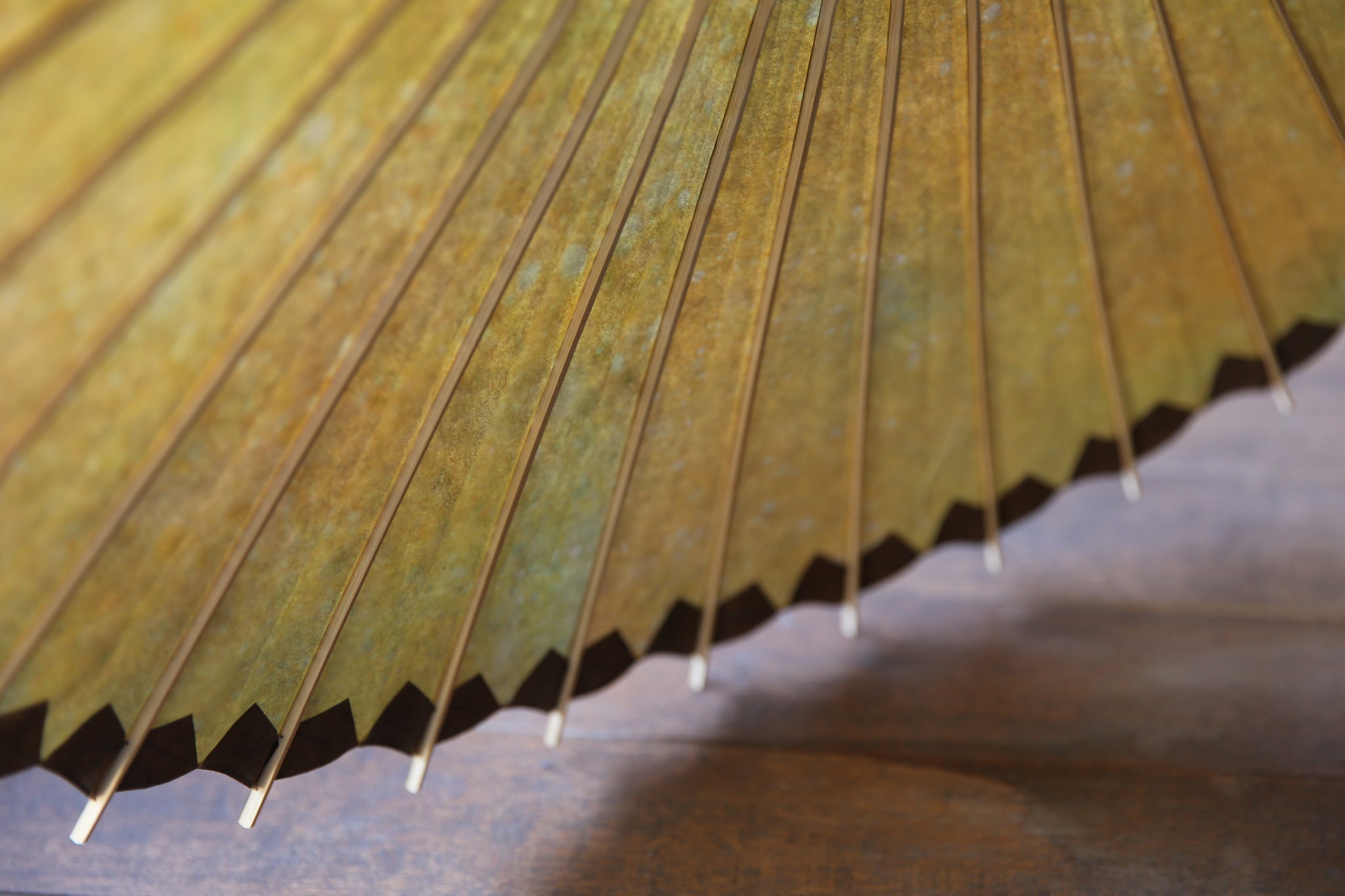 軒糸が2本交差しているため、軒がギザギザになった表情が美しい網代と呼ばれる特殊な日傘。