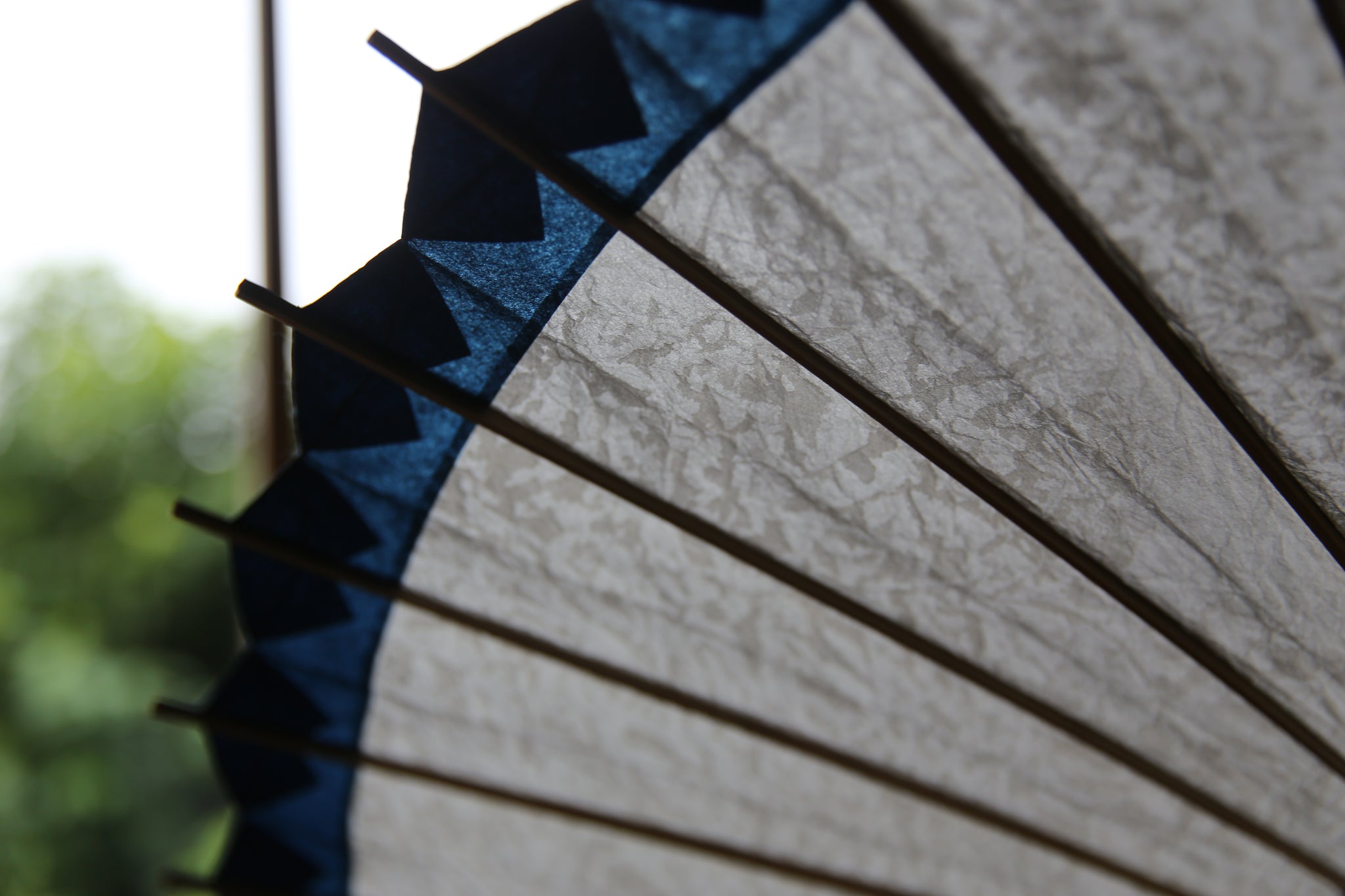 軒糸が2本交差しているため、軒がギザギザになった表情が美しい網代と呼ばれる特殊な日傘。