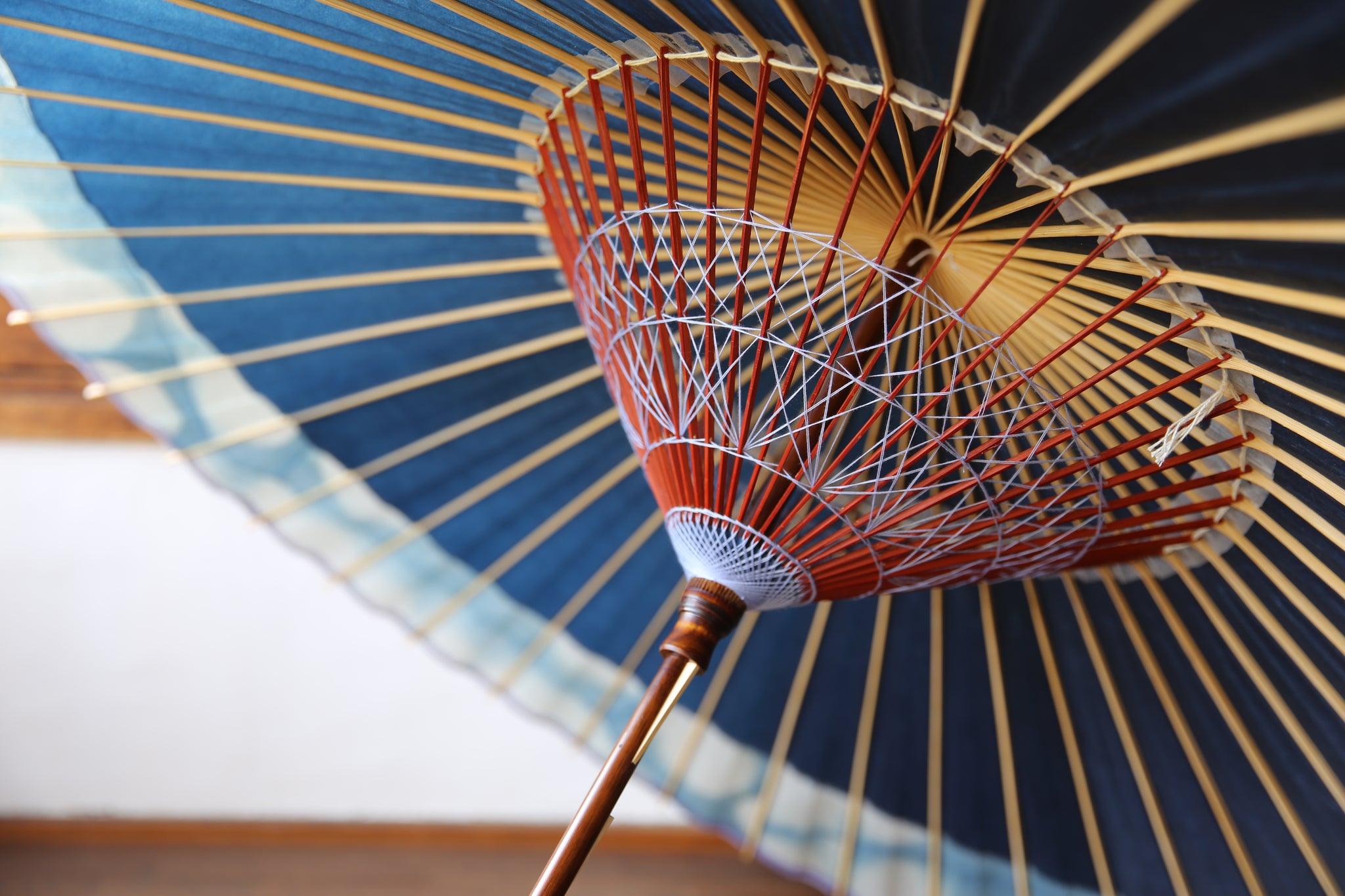 「開いて花、閉じて竹」と謳われる和傘は、職人の熟練の技と、細部に至るこだわりが詰まった日本の伝統的な工芸品です。