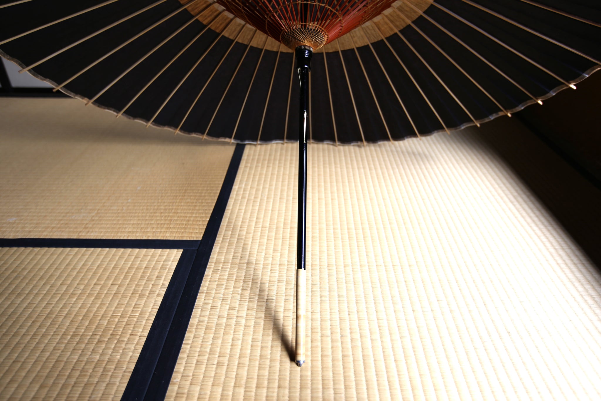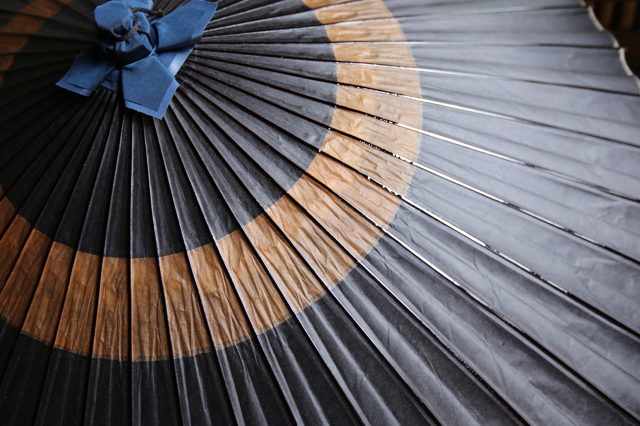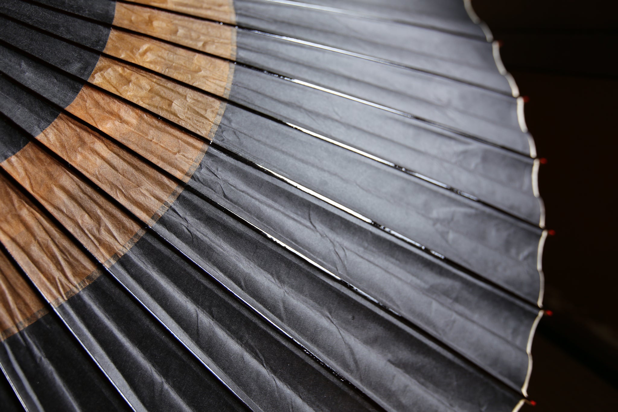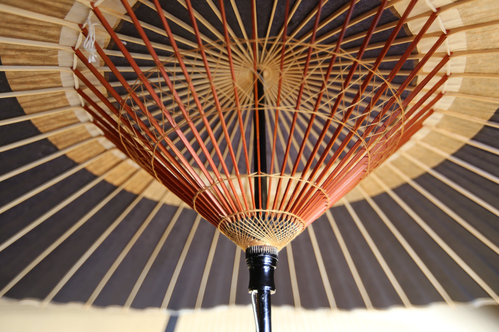 The framework of a Japanese umbrella is made from a piece of bamboo that is split evenly and assembled so that when the umbrella is folded, it returns to its original shape.
