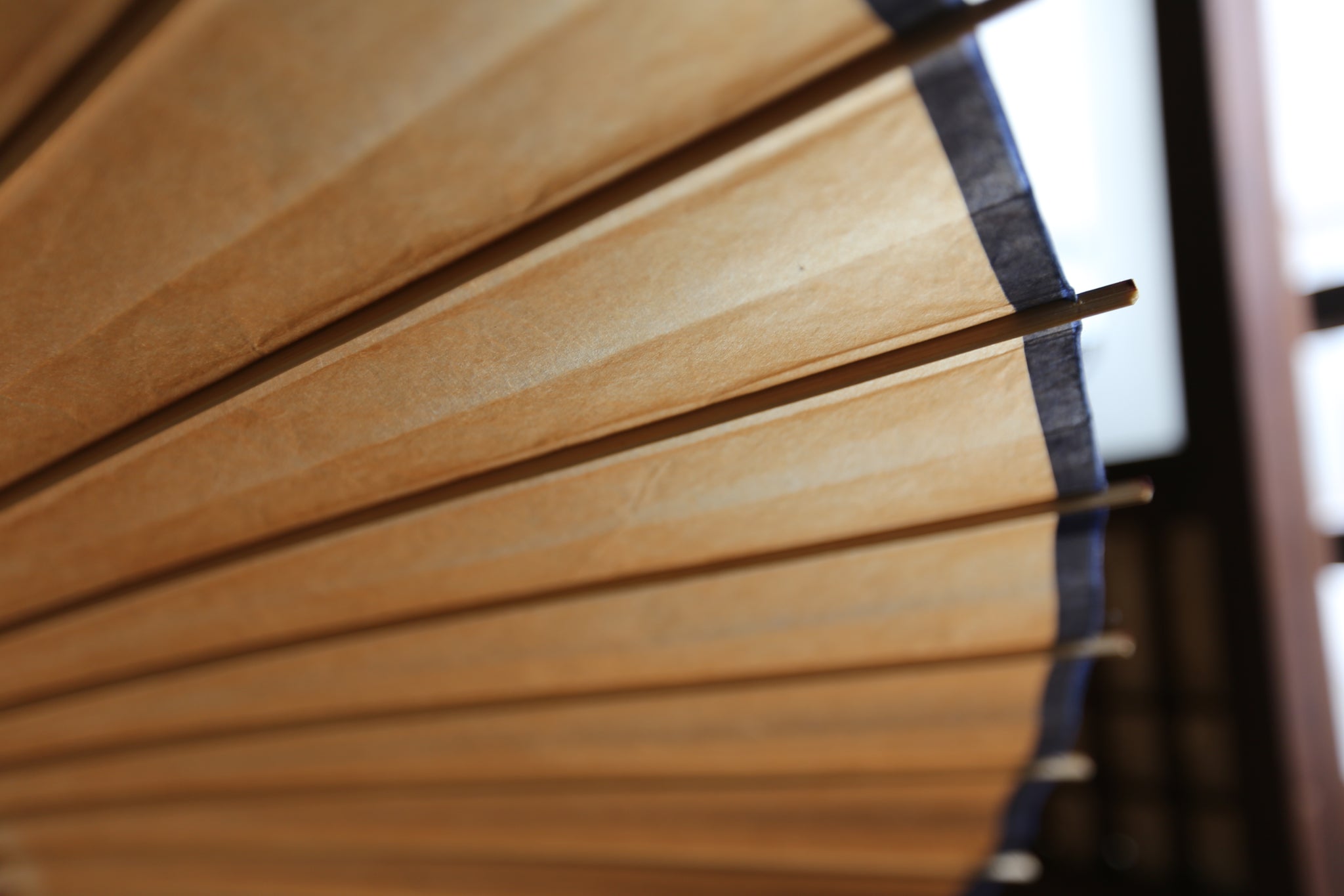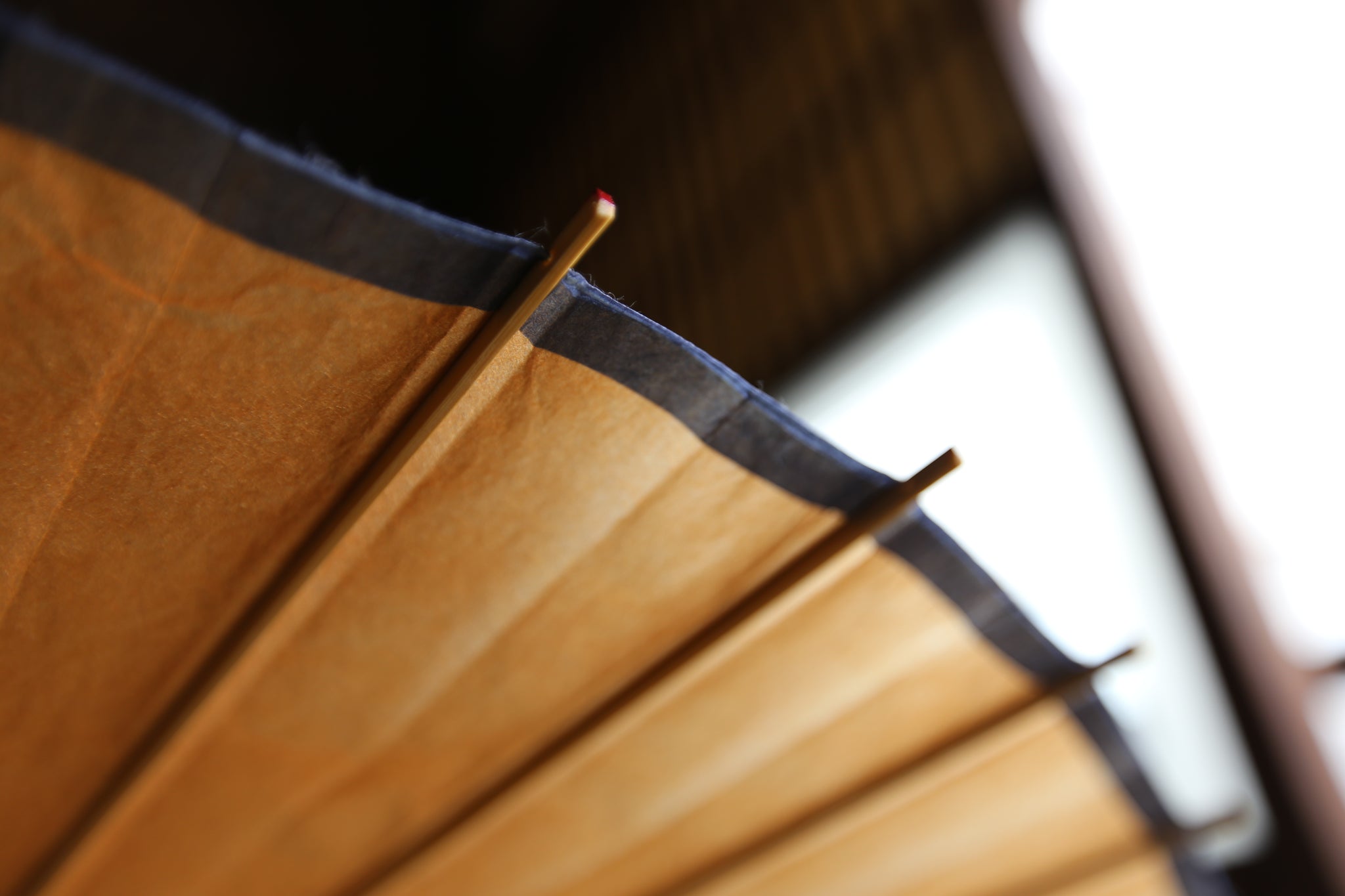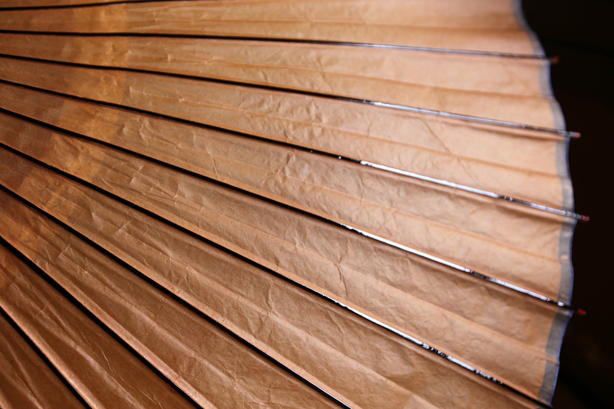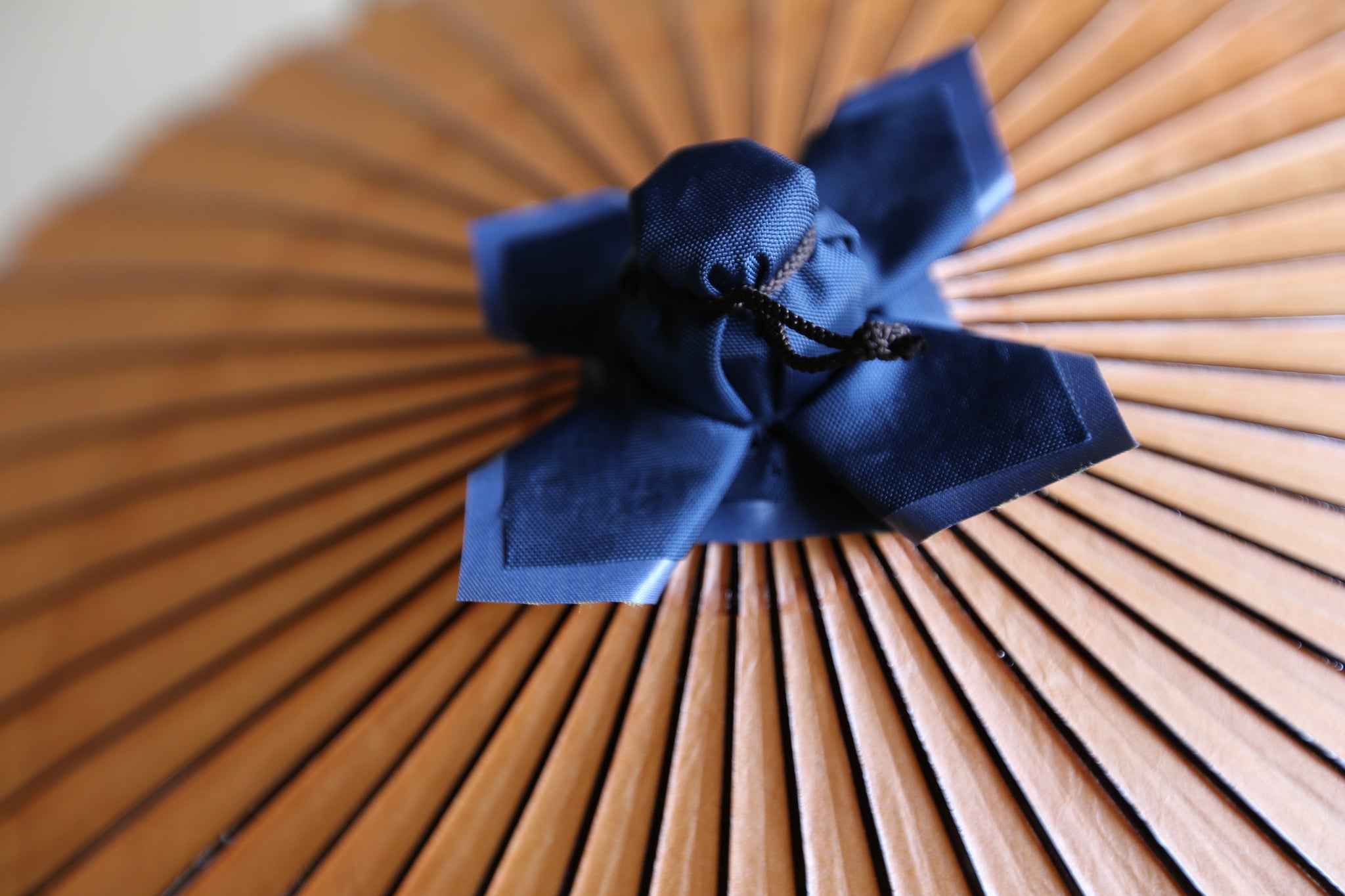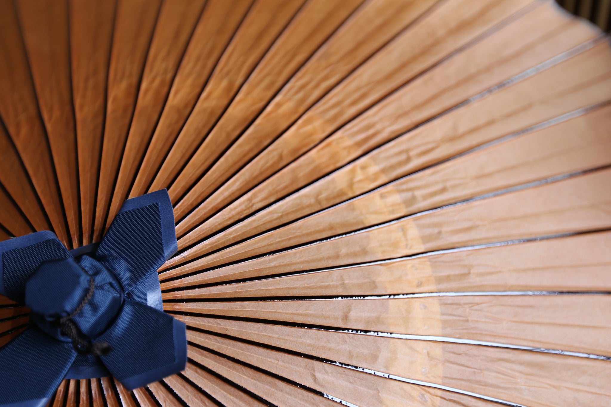 The framework of a Japanese umbrella is made from a piece of bamboo that is split evenly and assembled so that when the umbrella is folded, it returns to its original shape.