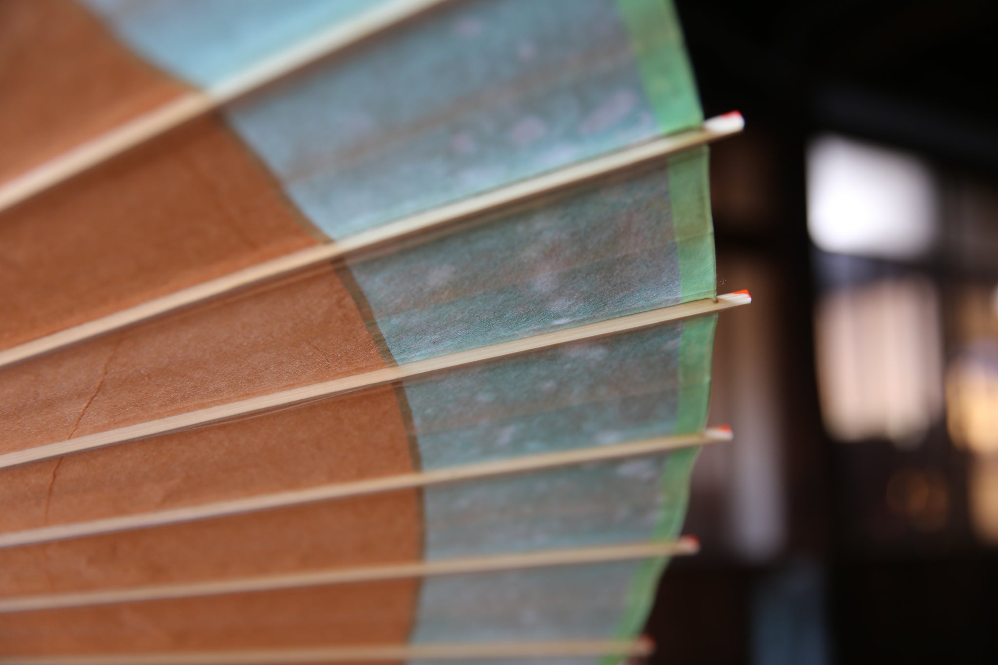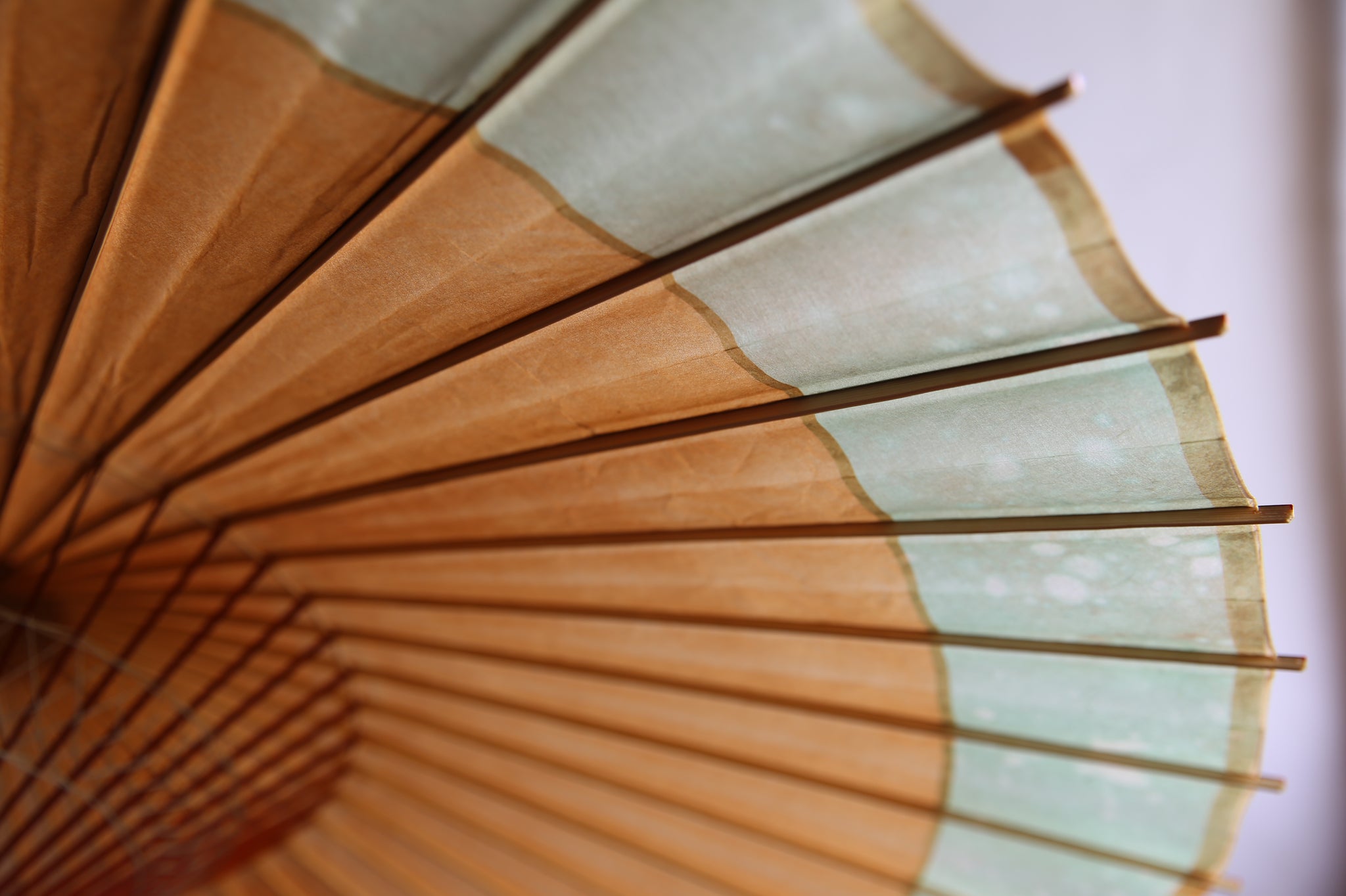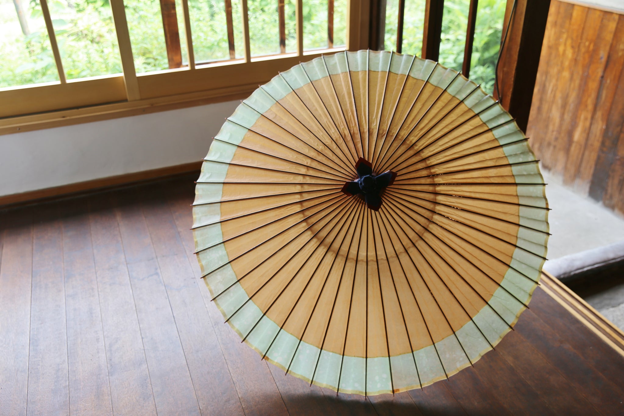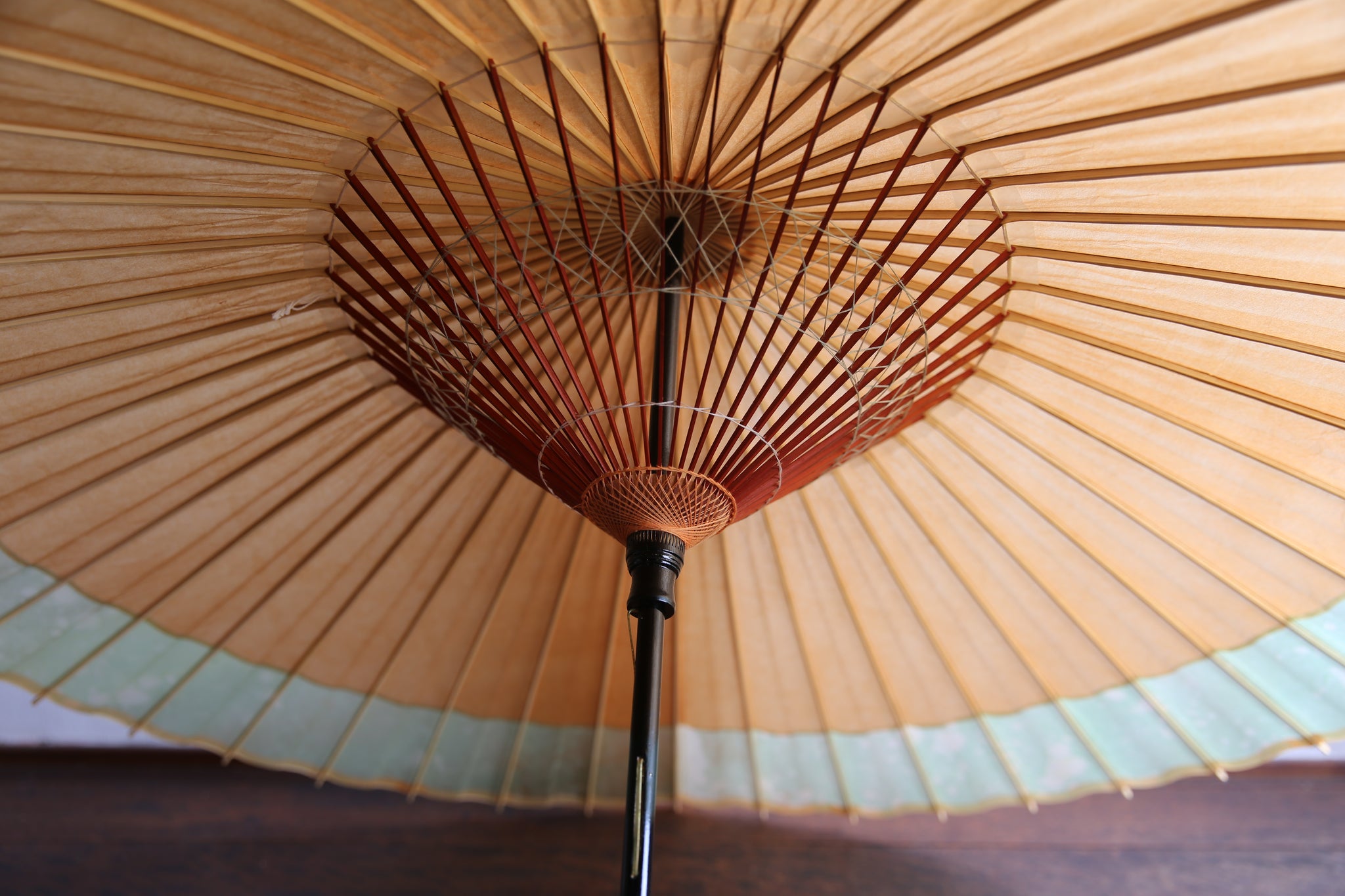 The framework of a Japanese umbrella is made from a piece of bamboo that is split evenly and assembled so that when the umbrella is folded, it returns to its original shape.