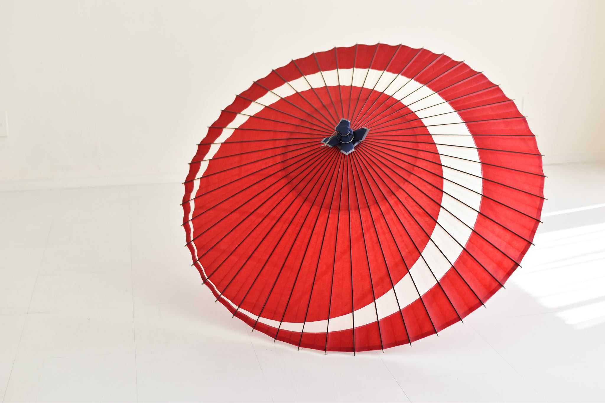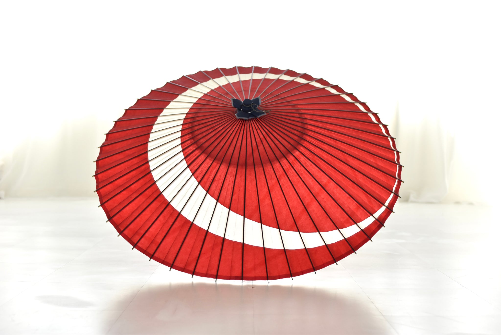 Un paraguas japonés con un hermoso doble arco de Tsukinoko en forma de luna creciente.
