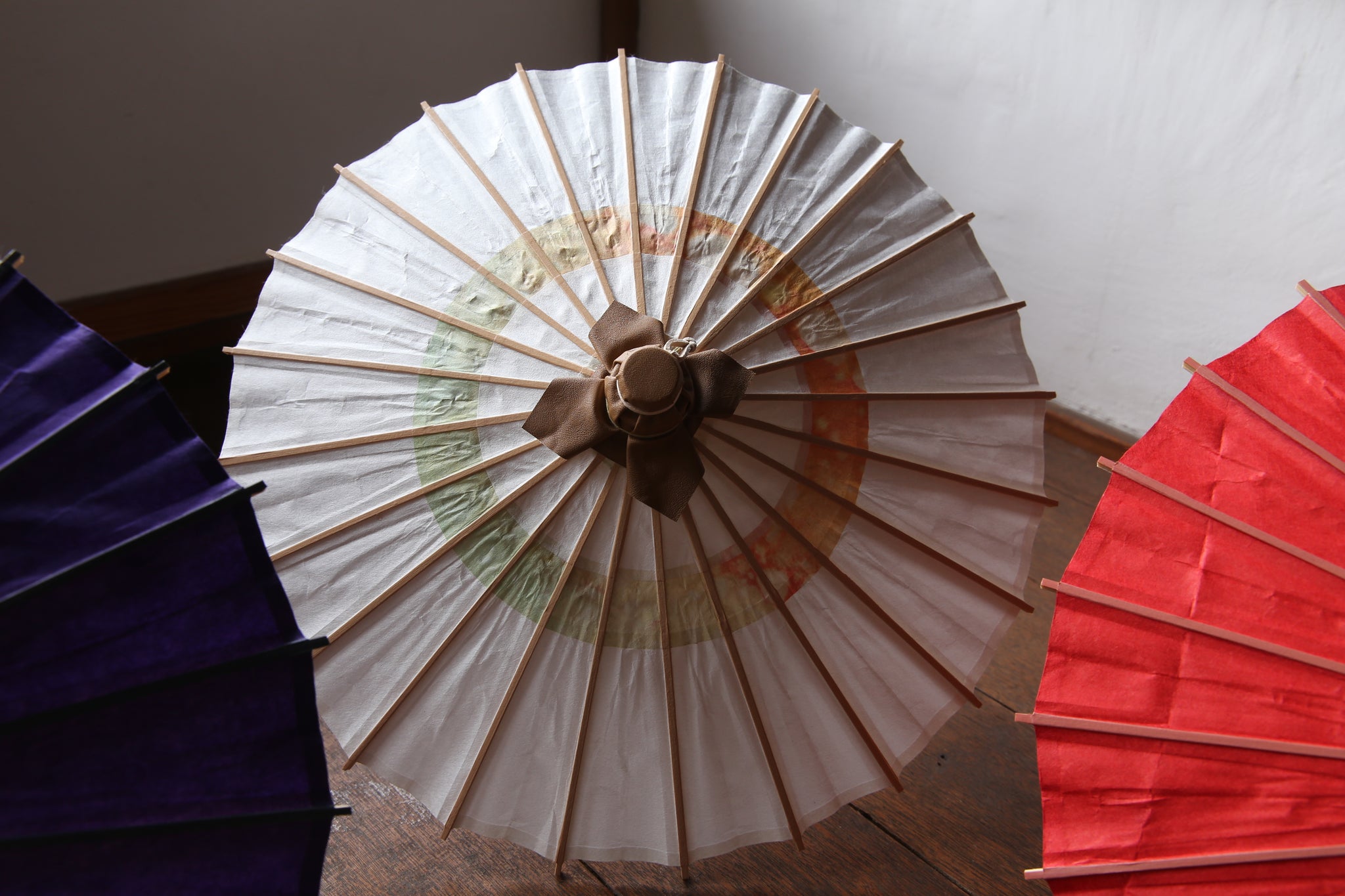 与遮阳伞一样,它是由未涂油的和纸制成的,因此请注意不要弄湿。