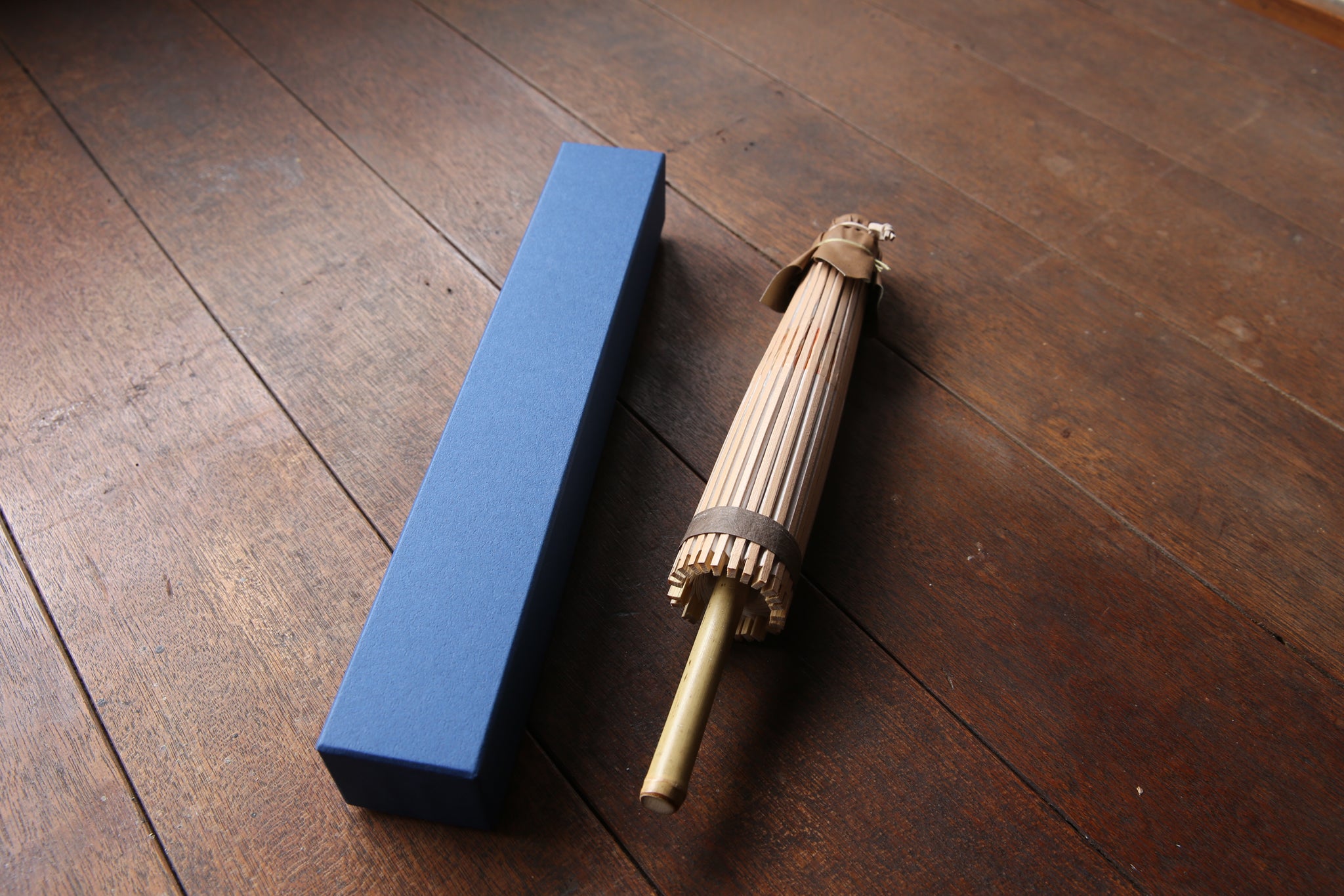 日本伞的骨架由一块竹子制成,将其均匀劈开并组装起来,这样当伞折叠时,它就会恢复到原来的形状。