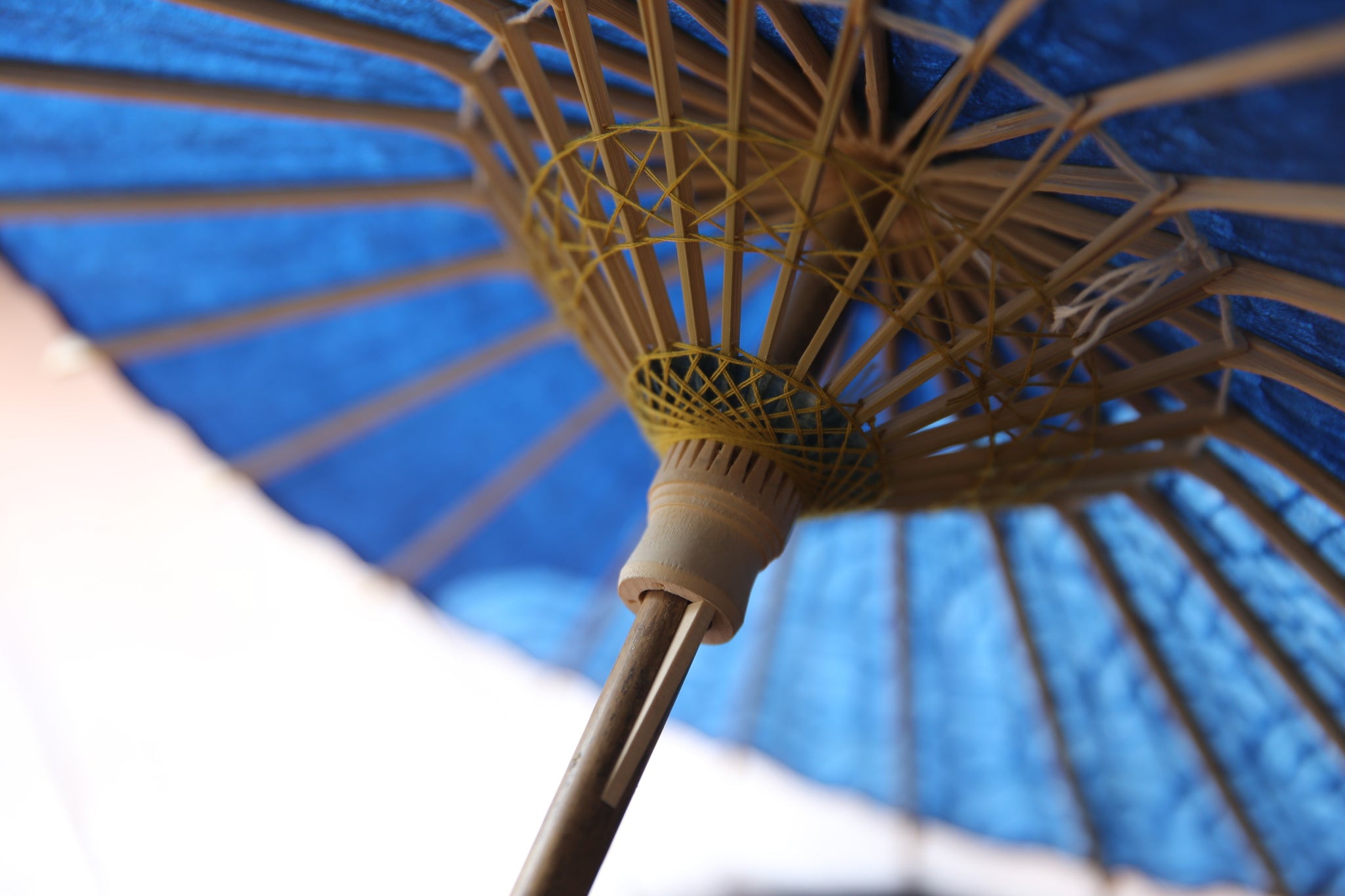 日本伞的骨架由一块竹子制成,将其均匀劈开并组装起来,这样当伞折叠时,它就会恢复到原来的形状。