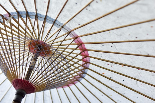 日本伞的骨架由一块竹子制成,将其均匀劈开并组装起来,这样当伞折叠时,它就会恢复到原来的形状。