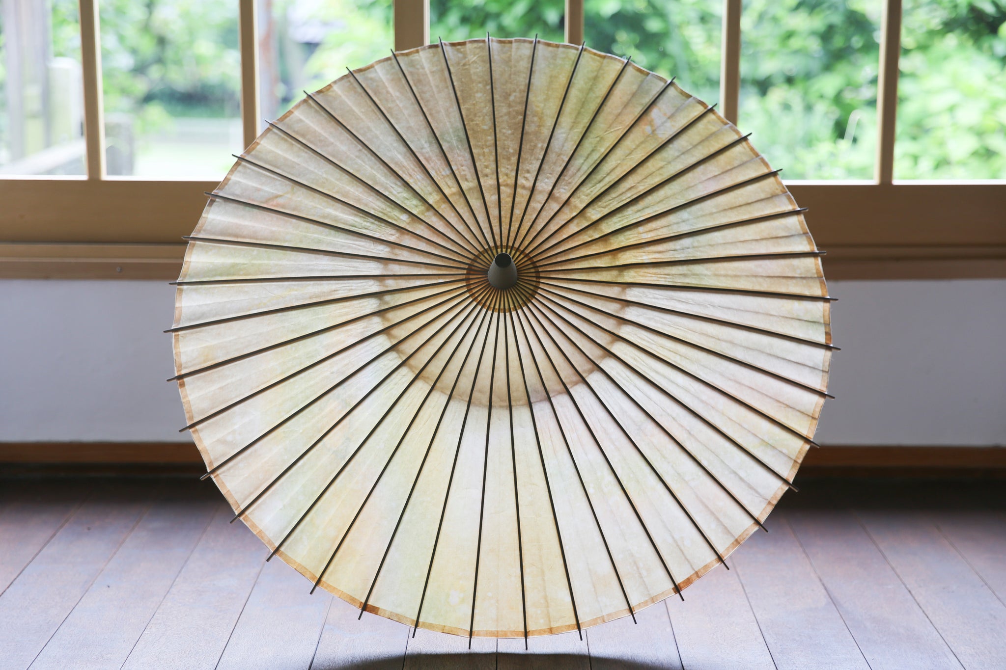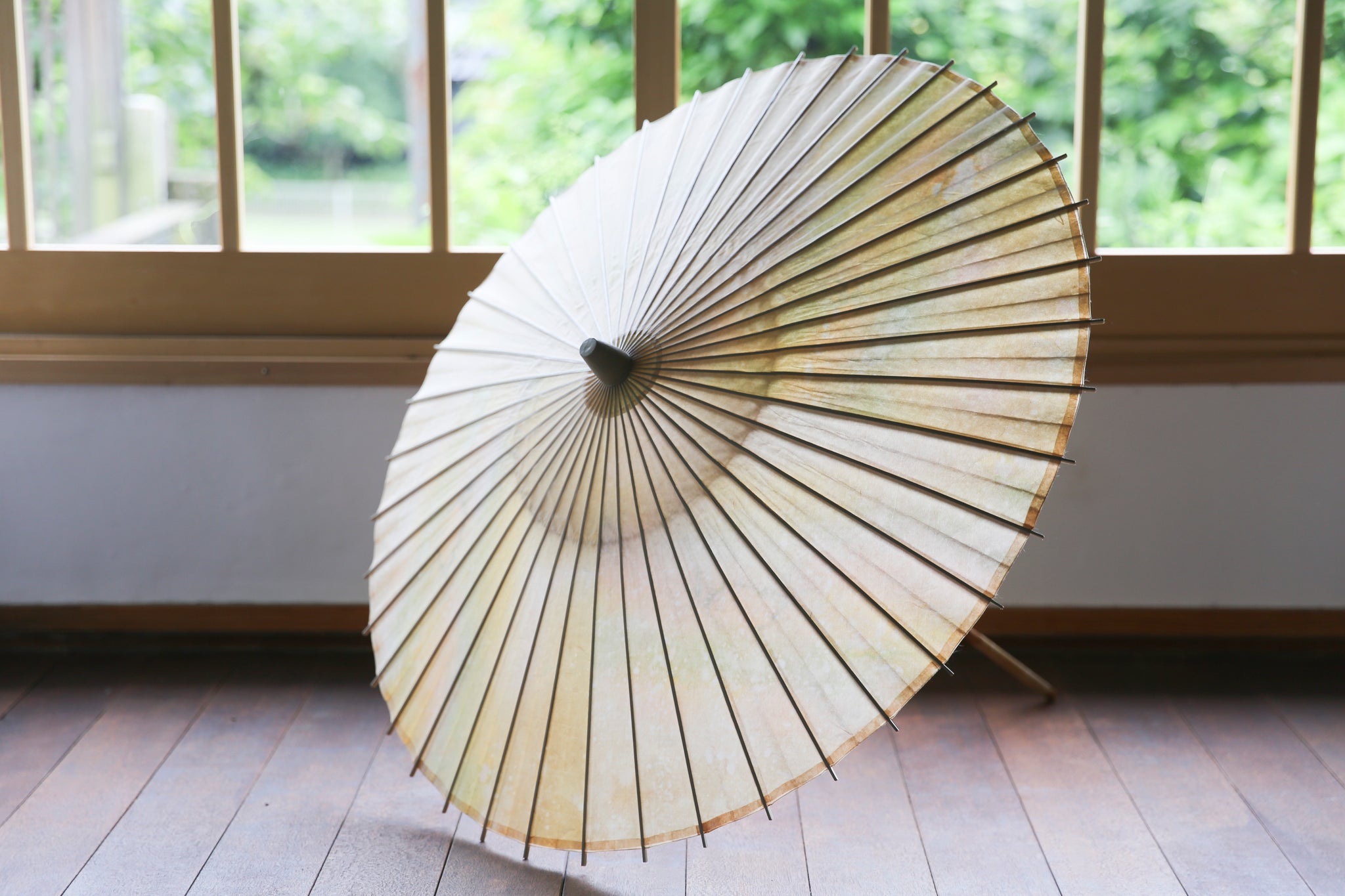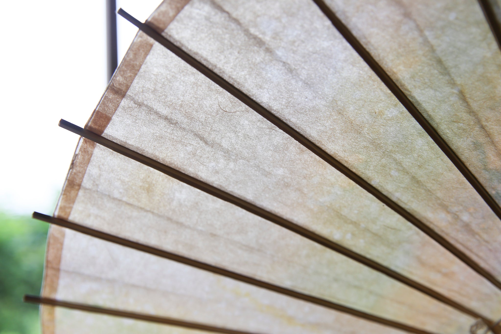 日本伞的骨架由一块竹子制成,将其均匀劈开并组装起来,这样当伞折叠时,它就会恢复到原来的形状。