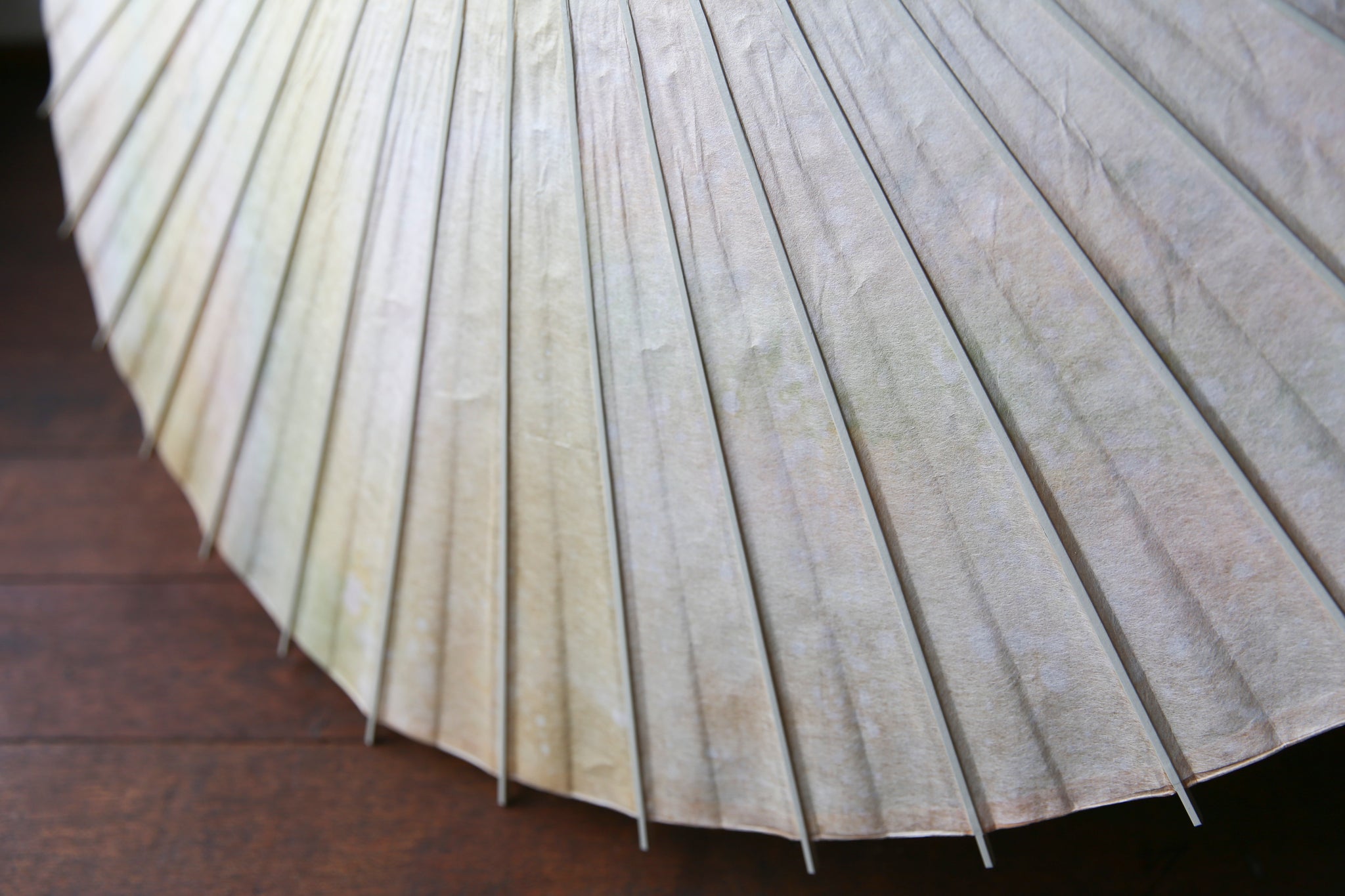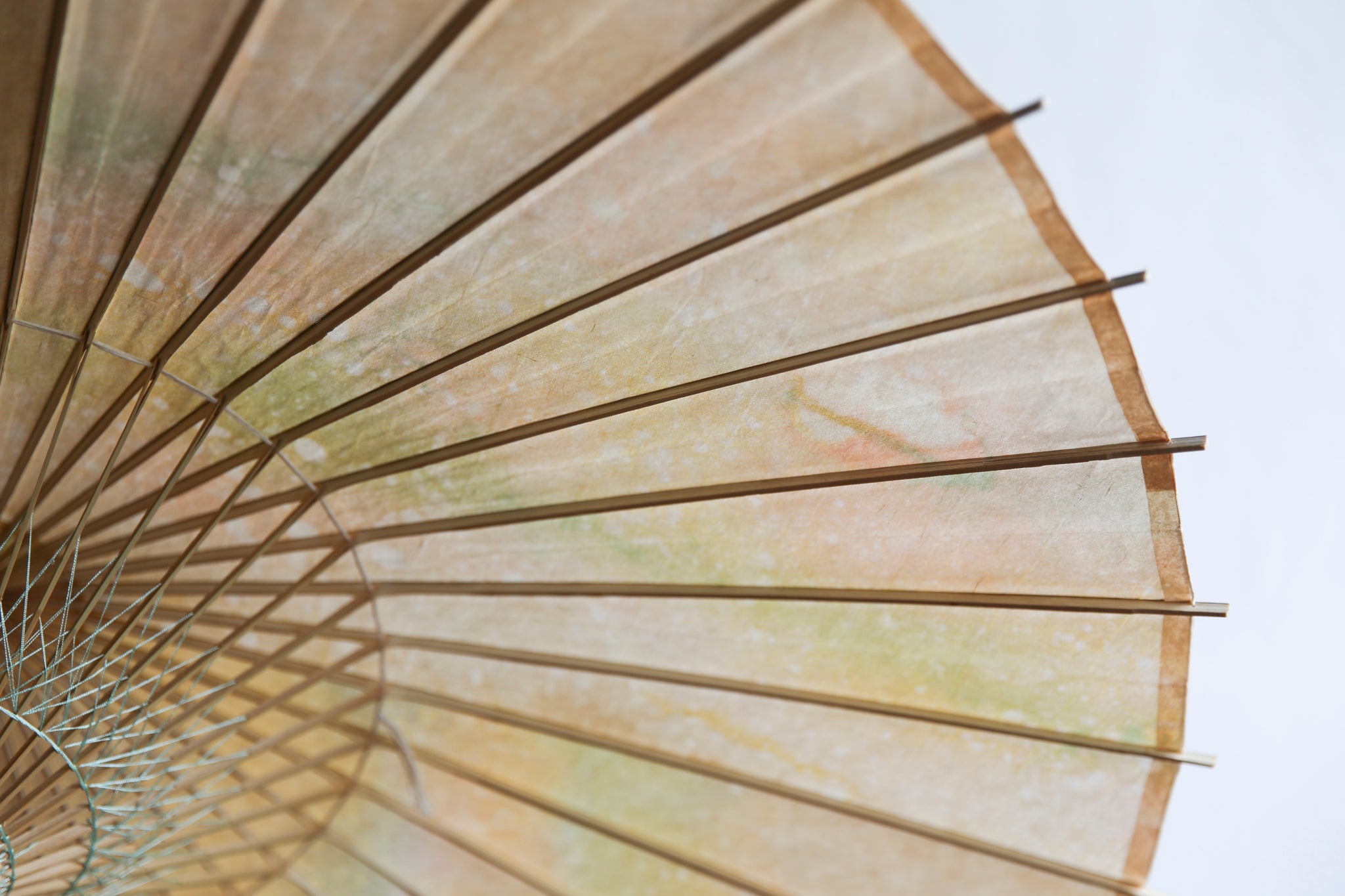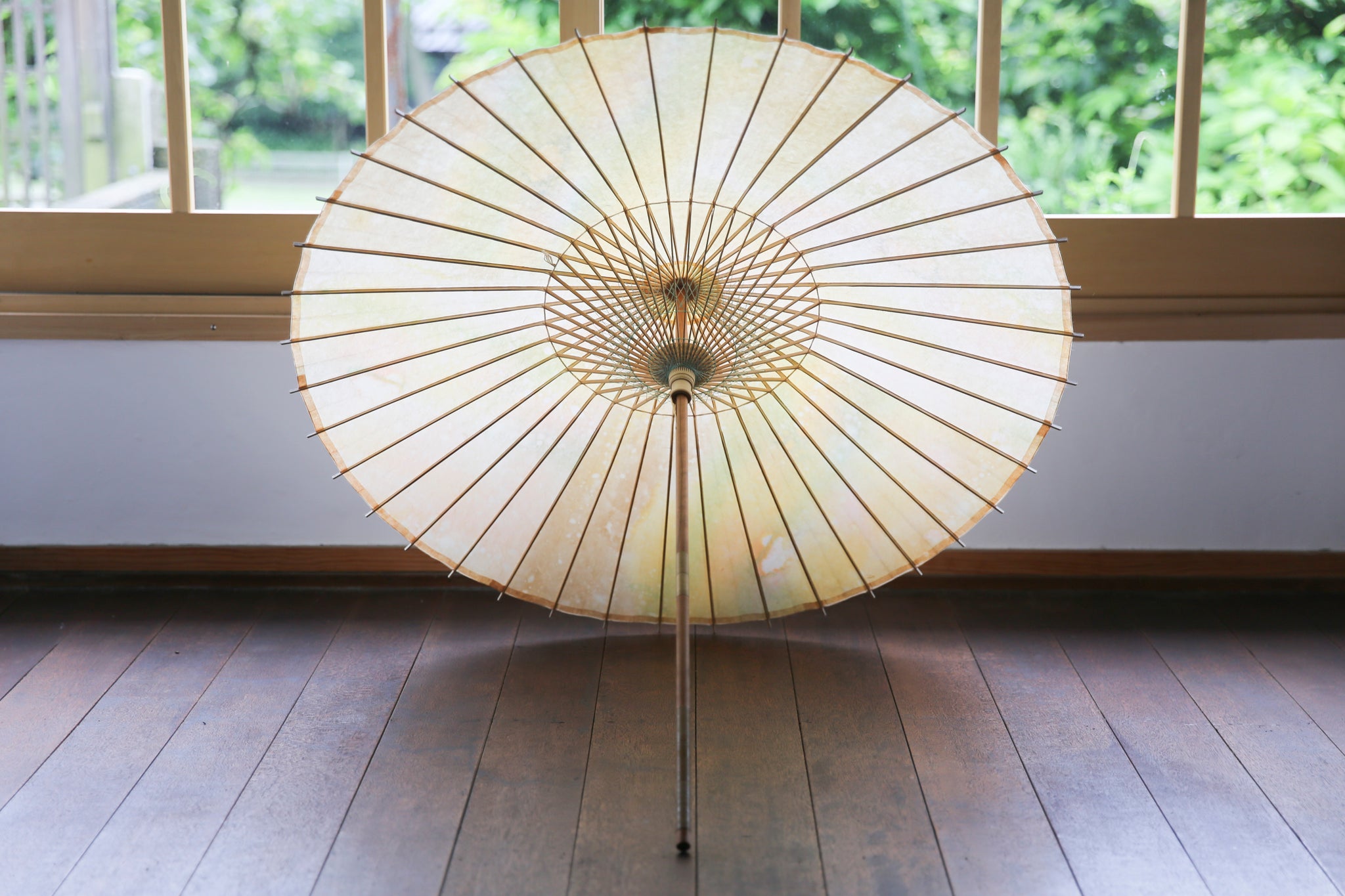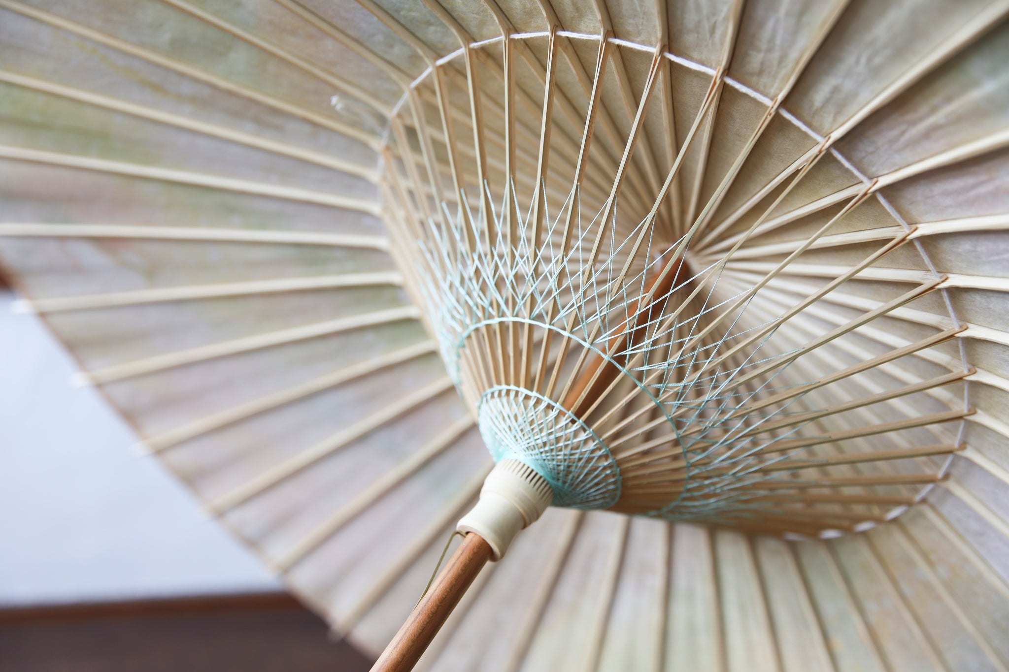 日本伞的骨架由一块竹子制成,将其均匀劈开并组装起来,这样当伞折叠时,它就会恢复到原来的形状。