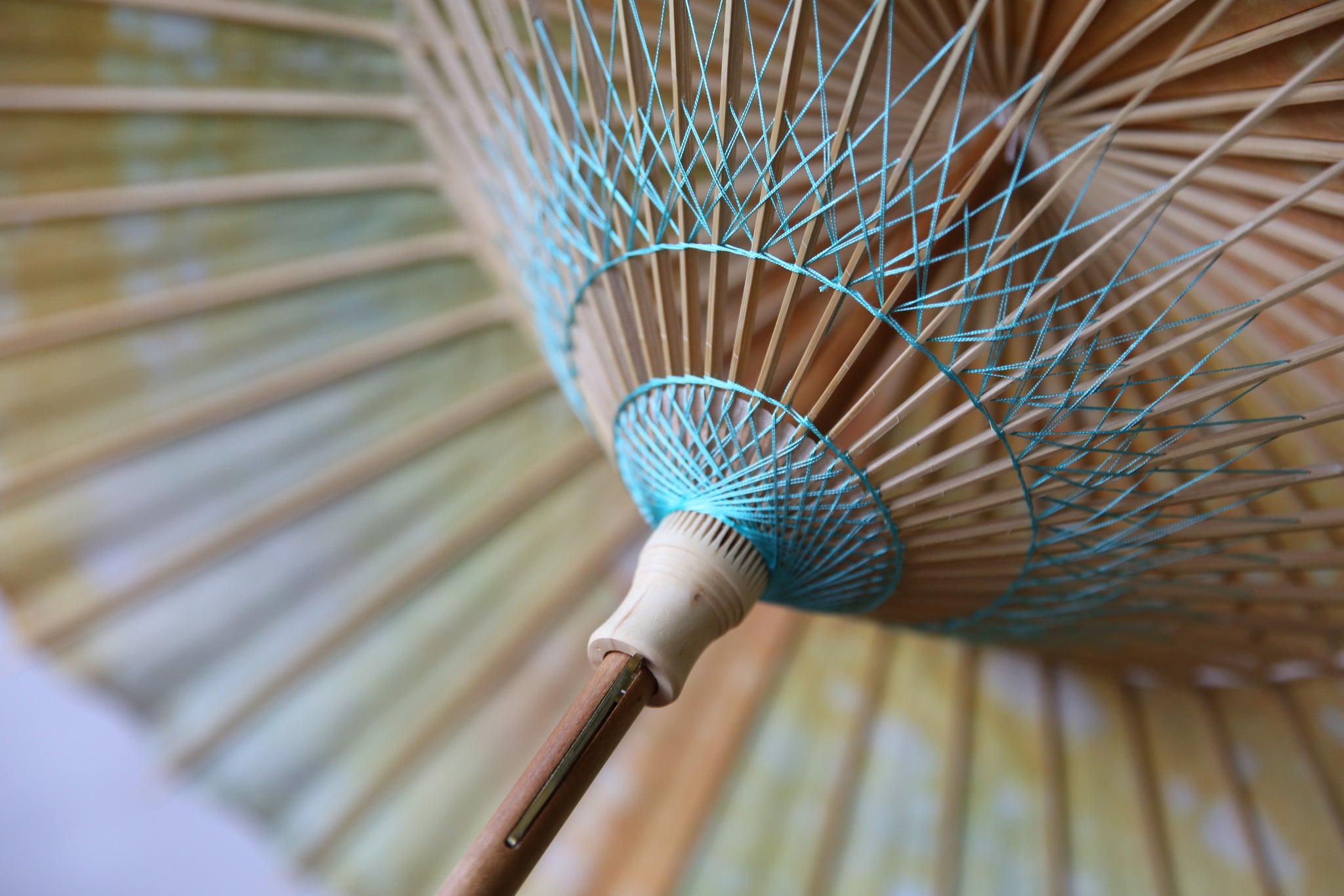 日本伞的骨架由一块竹子制成,将其均匀劈开并组装起来,这样当伞折叠时,它就会恢复到原来的形状。