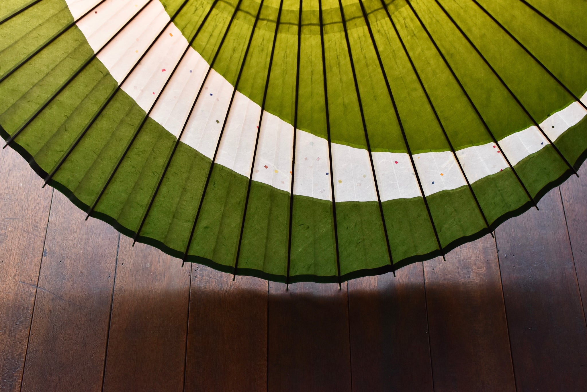 日本伞的骨架由一块竹子制成,将其均匀劈开并组装起来,这样当伞折叠时,它就会恢复到原来的形状。
