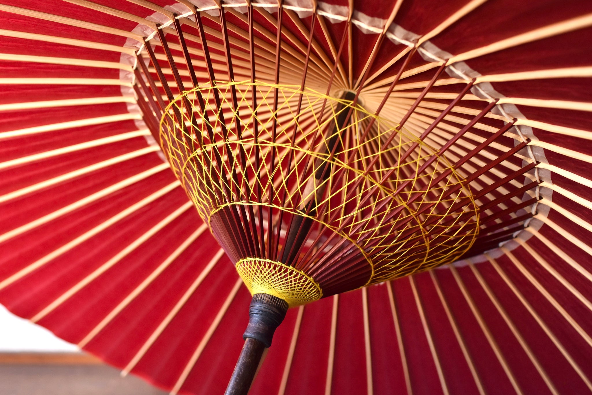 日本伞的骨架由一块竹子制成,将其均匀劈开并组装起来,这样当伞折叠时,它就会恢复到原来的形状。