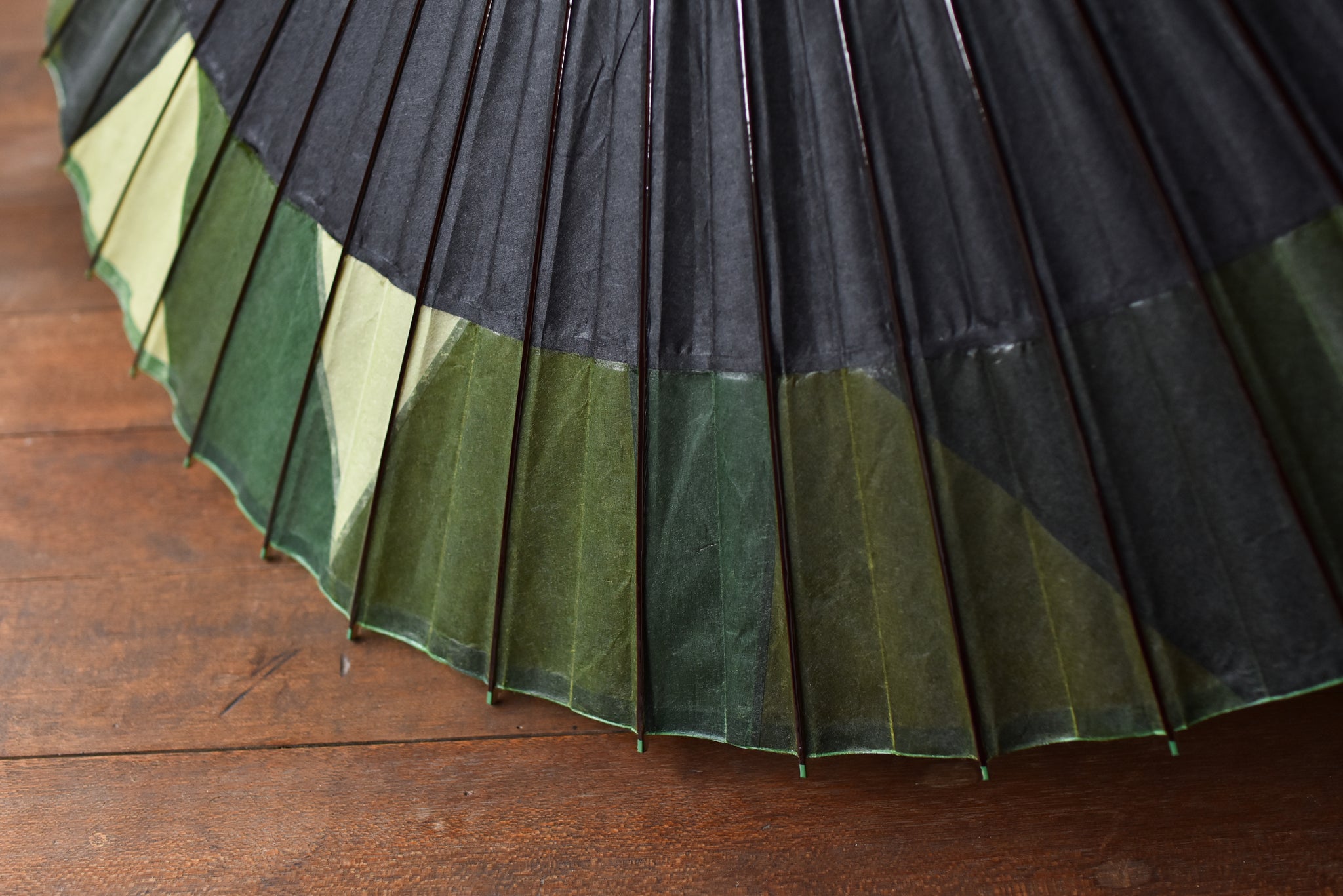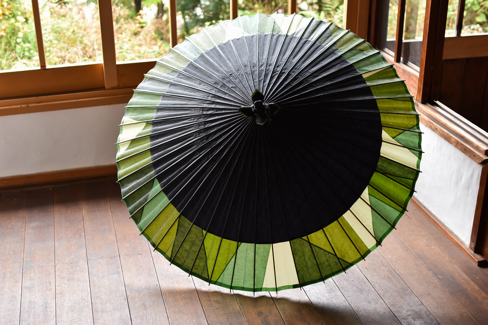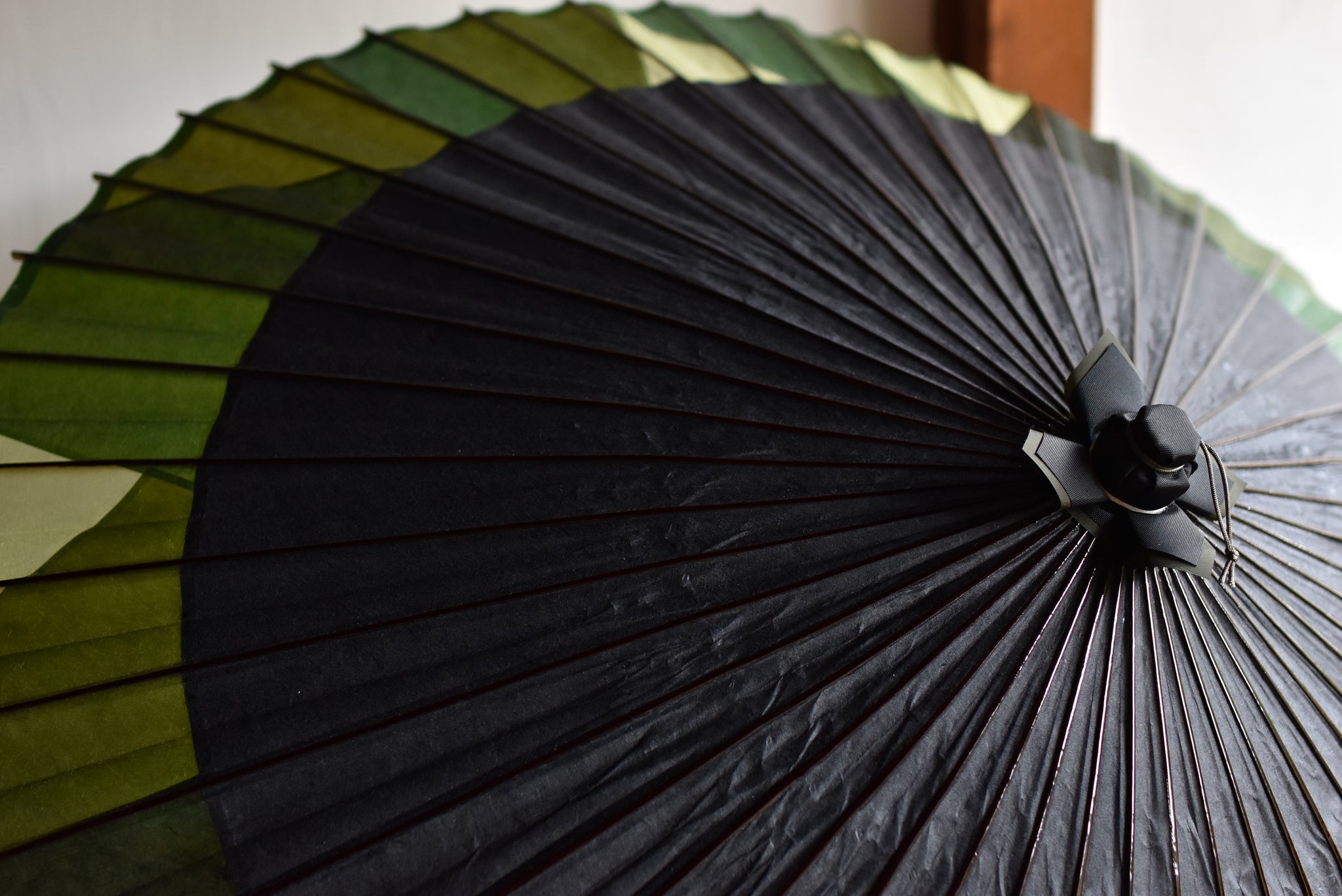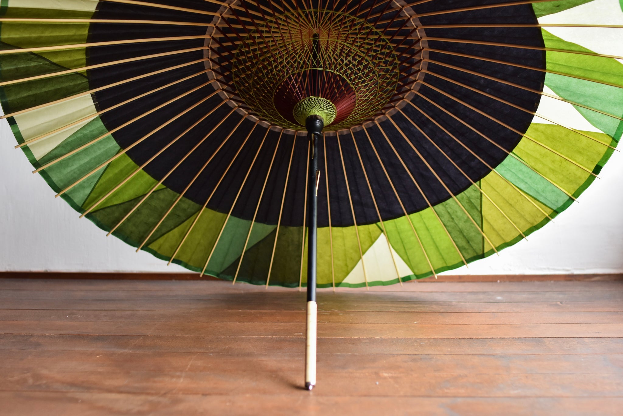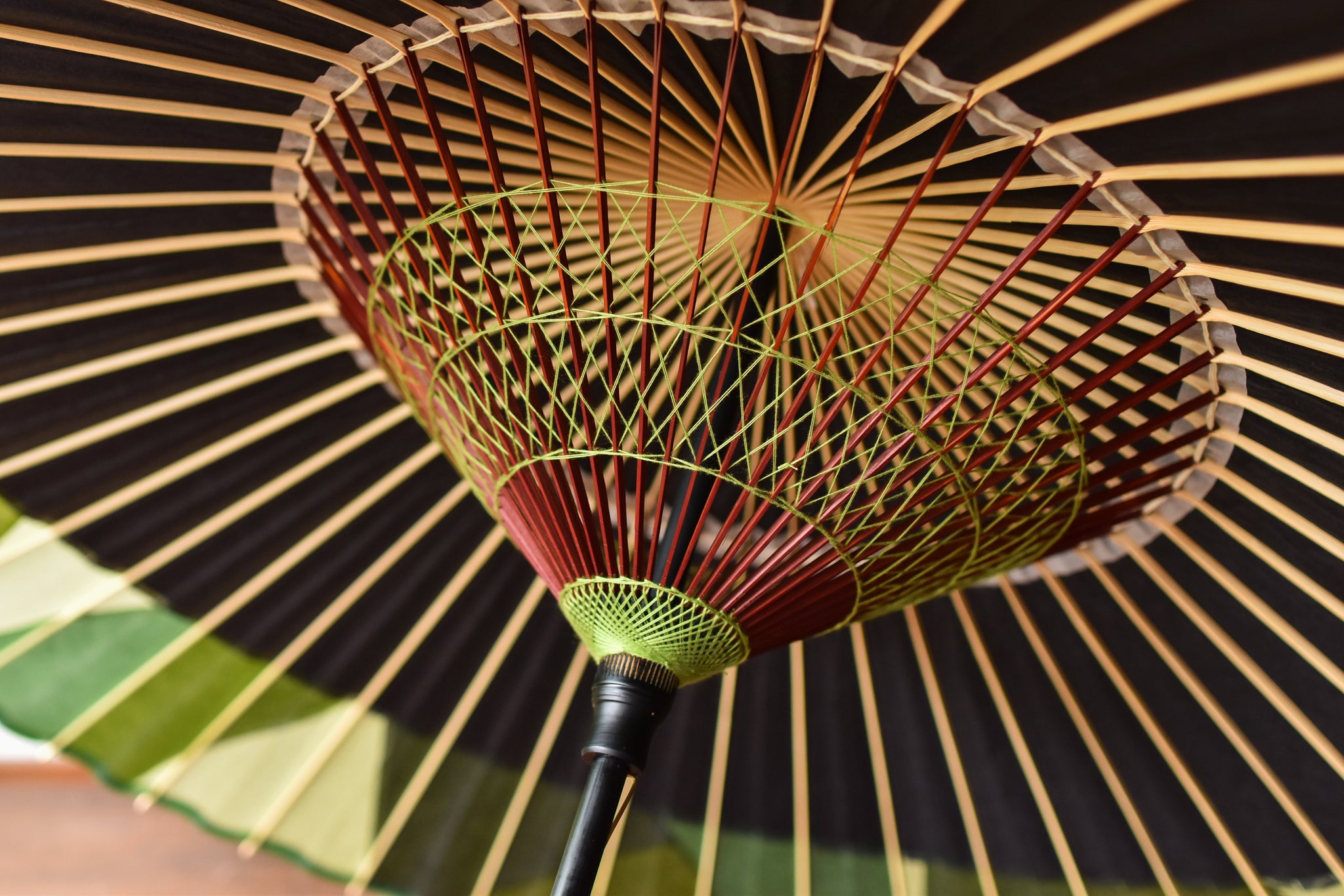 日本伞的骨架由一块竹子制成,将其均匀劈开并组装起来,这样当伞折叠时,它就会恢复到原来的形状。
